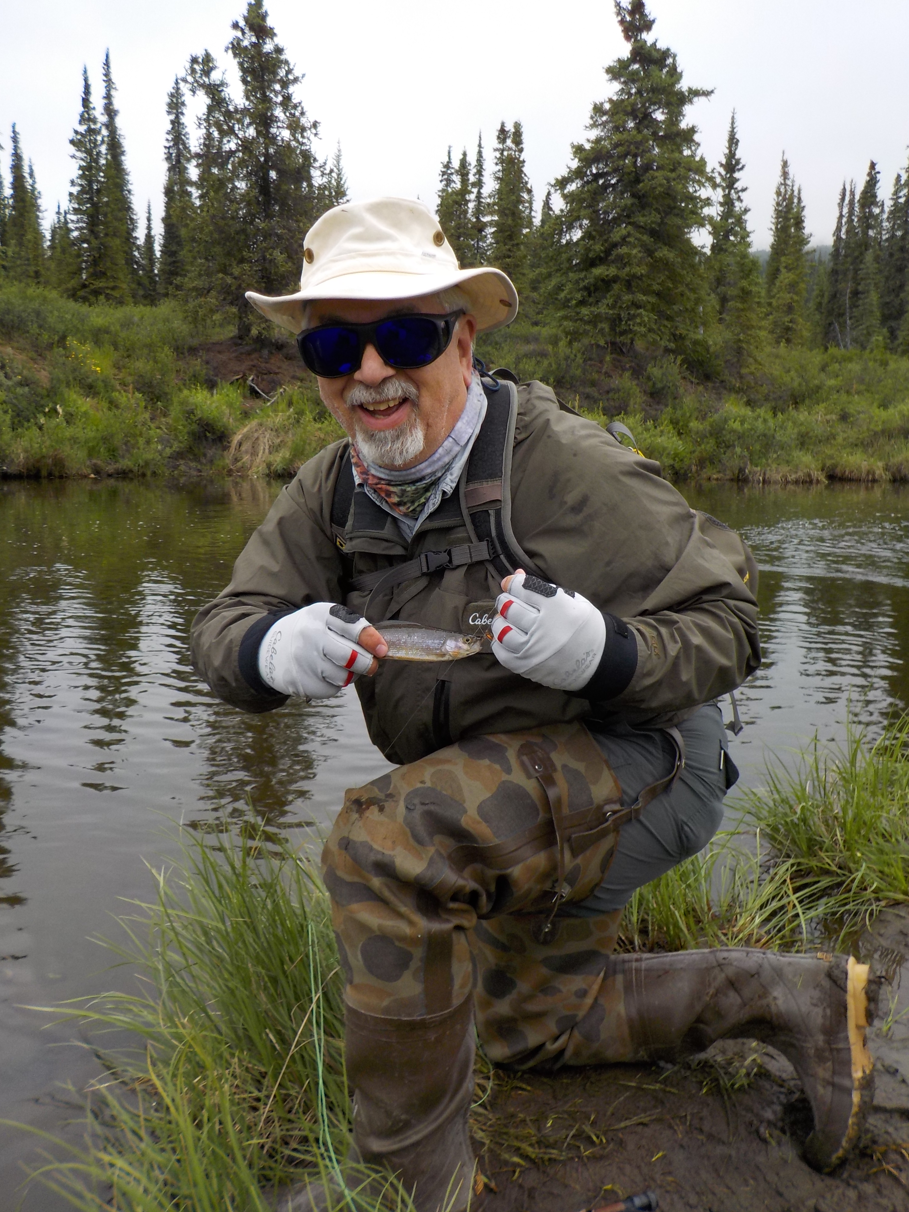 In late June, we headed north for an Alaskan land-and-sea tour, something we have talked about for years.  In the time we were there, we rode on planes, trains, buses, boats, and a ship.  We experienced the most spectacular scenery and wildlife we have ever seen.  I’d have to say, it was the type of once-in-a-lifetime trip thatDSCN0152 everyone dreams of.  While we were in Denali National Park, I had the chance to do a guided fly fishing trip for grayling one morning.  I was one of five clients working with two guides, and was the only client in the group that had ever fly fished.  I wasn’t sure how that was going to work out, but I had nothing to worry about.  When we got to the water, my guide pointed to a nice pool on a bend in the river, and told me to give it a try while he got another client started.  In the first 6 casts that I made, I landed two beautiful little grayling.  The entire morning was like that.  The guide would check on me, give me a couple of hints, point me to another honey hole, and go back to the other client.  In the course of the morning, I released about two dozen grayling, ranging from 9 to 14 inches.  To say the least, I had a blast.