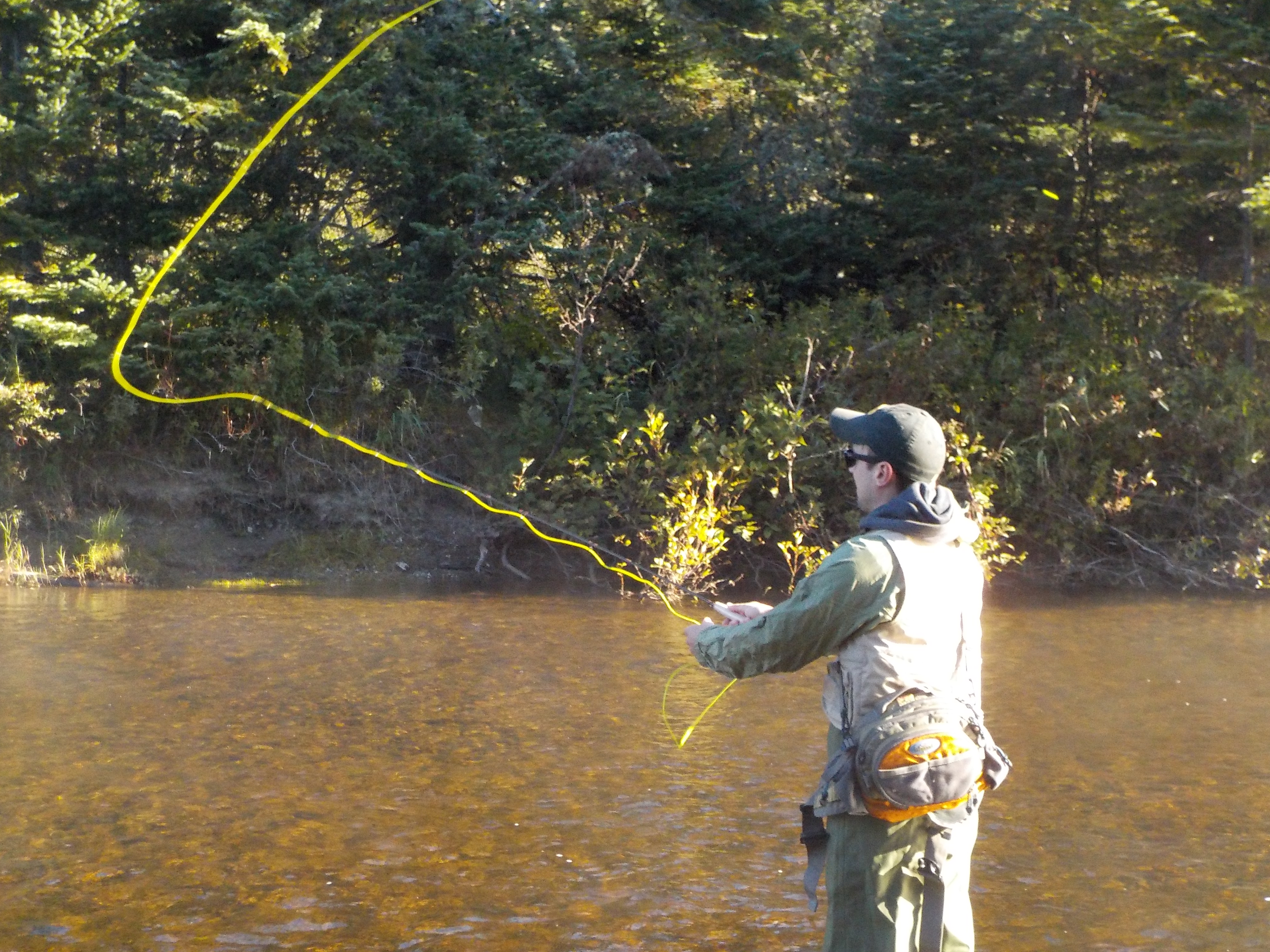In September, we headed east to visit our youngest son and his wife in Maine.  For weeks before the trip, I tried to find a guide in the Rangeley Lakes region, DSCN0191where we all planned to spend a few days of hiking and fishing.  Everyone that I talked to was booked while we were there.  We found out that this time of year is normally when the landlocked salmon start their run, and all the regulars had scheduled their guided trips.  Several of the guides that I talked to were nice enough to give me lots of information that would help us to be successful on our own.  Weather threw us a curve, though.  The waters were lower and warmer than needed, and the fish were not moving.  I was hoping that my son would be able to land his first fish on a fly rod while we were there, but no such luck.  Still I was able to spend time fishing with my son on some unbelievable pretty water while we were there.  That’s always hard to beat.
